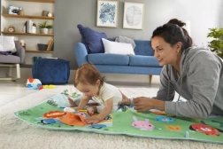 Ta mehka in prostorna igralna podloga z očarljivim zunanjim motivom vzbuja radovednost in naravno podpira razvoj otroka. Zahvaljujoč priloženim igračam se dojenček dolgo zabava, hkrati pa krepi vratne in hrbtne mišice ter razvija finomotoriko.