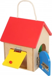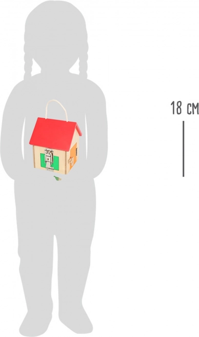 Ta kakovostna lesena hišica znamke small foot je polna interaktivnih elementov – vsaka vratca imajo drugačno vrsto zapirala, zato otroci na zabaven način urijo spretnost prstov, logično razmišljanje in potrpežljivost. Zaradi čvrste izdelave in živahnih barv je idealna za igro doma ali na poti.