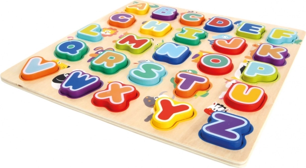 Ta barvita sestavljanka z 26 črkami otrokom pomaga naravno usvojiti angleško abecedo in besedišče s pomočjo prikupnih ilustracij živali. Vsaka črka ima svoj izrez, pod katerim sta slika in angleško ime živali, zato se učenje spremeni v igro.