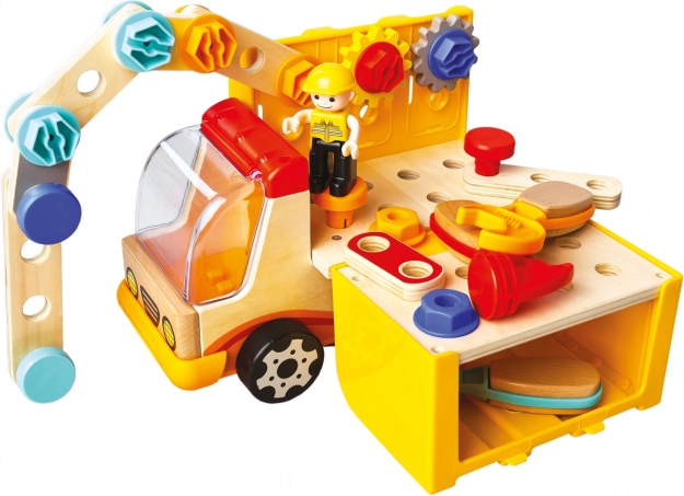 Odkrijte zabavo na gradbišču z večnamenskim tovornjakom BINO, ki združuje les in plastiko za vzdržljivost ter nizko težo. V kompletu je figurka voznika, nagibna kesonska karoserija in bogata oprema – ključ, kladivce, izvijač ter gradbeni deli za kreativno sestavljanje. Igra razvija fino motoriko, domišljijo in spodbuja igranje vlog malih graditeljev.