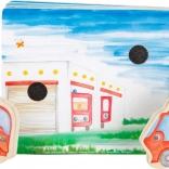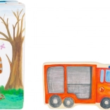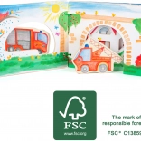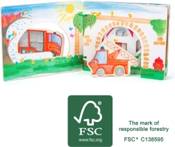 Z leseno knjižico Gasilci se otroci potopijo v dinamični svet gasilcev. Knjiga je opremljena z lesenimi figuricami, ki spodbujajo izmišljanje lastnih zgodb. Po pogasitvi ognja lahko otroci figurice vrnejo nazaj v knjižico, s čimer se učijo osnov reda in odgovornosti.