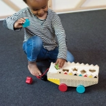 Ta leseni vlečni aligator z vstavljanko je idealna igrača za male raziskovalce od 18 mesecev naprej. Pet robustnih oblik otroci enostavno vstavljajo v ustrezne odprtine, s čimer razvijajo koordinacijo roka–oko in logično razmišljanje. Zahvaljujoč praktični vlečni vrvici in gumiranim kolescem bodo uživali v obilici aktivne zabave doma in na poti.