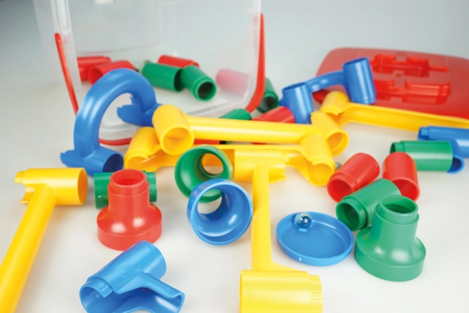 Spodbujajte naravno radovednost in učenje skozi igro. Sestavljanje proge uči otroke načrtovati, kombinirati in preizkušati nove možnosti. Igra s kroglico hkrati krepi potrpežljivost in zbranost.