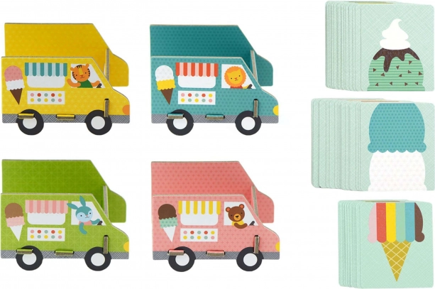 - 52 ilustriranih kart, 4 sladoledni tovornjački