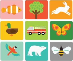 Barvite in jasne slike živali, predmetov in prevoznih sredstev olajšajo ugibanje tudi mlajšim igralcem.