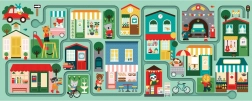 Blodišče in sestavljanka Mesto je zabavna igra za otroke od 2 leta, ki združuje sestavljanko z interaktivnim iskanjem predmetov. Otroci se lahko veselijo barvitega mesta, polnega presenečenj.