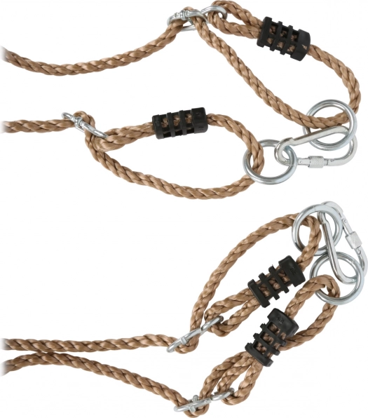 Najlonske vrvi s kovinskimi ušesi, obročki in varnostnimi vponkami omogočajo hitro, trdno in varno obešanje.