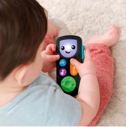 Interaktivni daljinski upravljalnik od Fisher-Price ponuja odlično zabavo povezano z učenjem za otroke v starosti od 6 do 36 mesecev. Ta igrači TV daljinski upravljalnik ima več kot 20 melodij, zvokov in fraz, ki otroke učijo osnove črk, številk in barv.