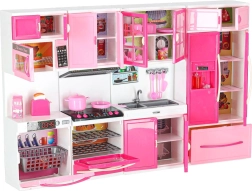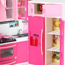 Ta moderna kuhinjica za punčke otrokom prinaša svet domišljije in posnemanja vsakodnevnih dejavnosti. Štirje povezani segmenti omogočajo sestavo popolne kuhinje z vsemi pomembnimi elementi – od štedilnika s pečico do hladilnika in korita. LED osvetljeni gorilniki in zvoki dodajo igri kuhanja realističen pridih.