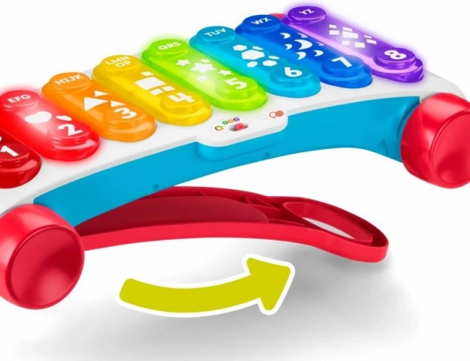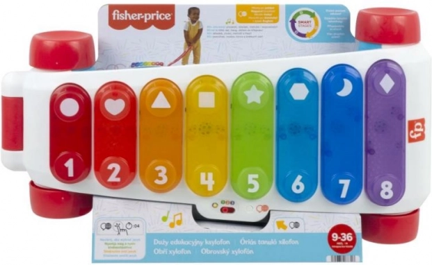Velik izobraževalni ksilofon Fisher-Price je nova različica klasične glasbene vlečne igrače, zdaj z še več zabave! Ta izjemno velik interaktivni ksilofon ponuja 8 osvetljenih tipk, ki sprožijo več kot 60 zvočnih aktivacij, vključno z različnimi zvoki, pesmimi in izjavami. Igrača je opremljena z robustnim zložljivim ročajem, da se lahko mali glasbeniki igrajo sede ali jo vlečejo na sprehodu. Tehnologija stopenj učenja omogoča prilagajanje načina igre, ko otrok raste. Izobraževalne fraze in pesmi učijo med drugim abecedo, številke in oblike, pa tudi preproste besede v angleščini. Pritisnite gumb z globusom za izbiro jezika: češčina, poljščina, madžarščina, slovaščina ali angleščina.