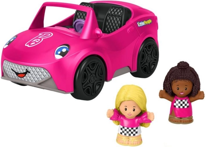 Barbie® kabriolet je pomanjšan na velikost igrač Little People® znamke Fisher-Price® in otrokom omogoča domišljijsko igro z dvema figuricama Little People® (vključeni v set). Ko otroci pritisnejo eno od figuric na voznikovem sedežu, zaslišijo zabavno glasbo in zvoke. V kabriolet, ki je ravno pravšnje velikosti za majhne ročice, se prilegata obe figurici Little People®, poleg tega pa ima čudovite barve in Barbie® okraske.