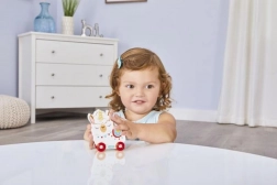 Igrača je opremljena s štirimi funkcionalnimi kolesci, ki omogočajo enostavno rokovanje in premikanje. Idealna je za razvoj grobe motorike in domišljije otrok že od 12 mesecev dalje.
