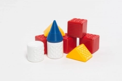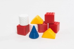 Ta didaktični komplet kock je idealna izbira za prve gradnje. Zahvaljujoč štirim oblikam in barvam otroci spoznavajo barve, oblike in se učijo koordinacije oko–roka. Kocke so lahke, varne in prijetne za držanje.