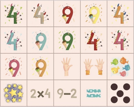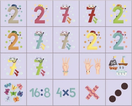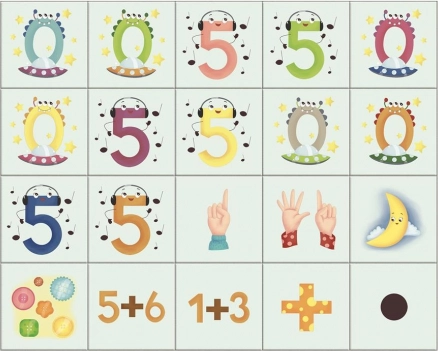 - Celostno učenje: števke, znaki, točkovni simboli in prstno štetje za razumevanje osnovnih operacij.