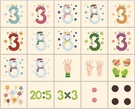 Spremenite prvi stik s številkami v zabavo. Lesene kocke Dino učijo otroke prepoznavati števke, sestavljati preproste primere in dojemati količine na različne načine – s pomočjo pik in slik prstov. Zahvaljujoč preglednemu potisku in prijetnemu naravnemu materialu so primerne tudi za najmlajše.