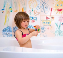 Odkrijte neskončne možnosti kreativnosti z barvicami za kad. Otroci lahko rišejo neposredno na kad ali ploščice in tako ustvarjajo čudovita umetniška dela med kopanjem. Mame lahko mirno počivajo - vse risbe se zlahka sperejo in barvice so povsem varne.