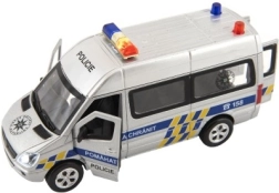 Kovinski policijski avtomobilček dolžine 15 cm je odličen za akcijsko igro doma in na poti. Zahvaljujoč trpežni kovinski izdelavi in plastičnim detajlom zdrži intenzivno igro, medtem ko utripujoče luči ter zvoki motorja in sirene dodajo vsaki dirki realističen pridih.