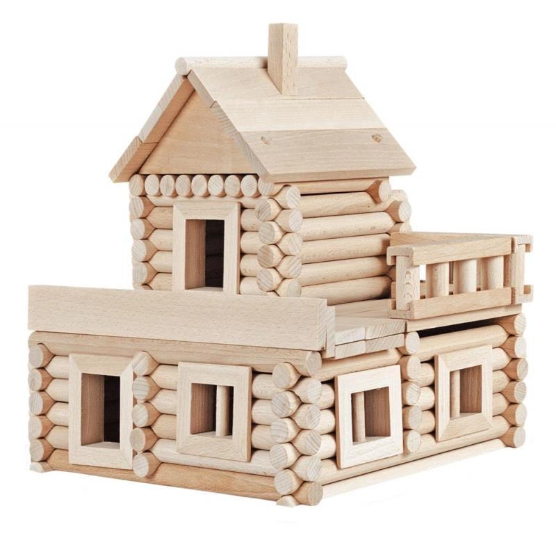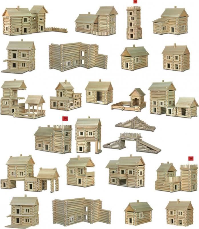 S 209 kosi ustvarite najmanj 37 različnih modelov. Vse sestavljanke iz družine VARIO so med seboj popolnoma združljive – z dodajanjem setov VARIO in VARIO XL razširite možnosti gradnje do res velikopoteznih dimenzij. Naravna površina lesa je prijetna na dotik, trpežna in estetska, kar poudari realističen »brunarni« videz.