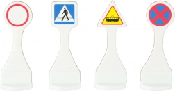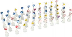 Zabaven in poučen set za otroke od 5 let vsebuje 50 najbolj znanih prometnih znakov na stabilnih plastičnih podstavkih. Pomaga uriti pravila cestnega prometa, razvija fino motoriko in podpira učno igro doma in v šoli.