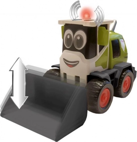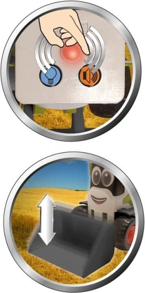 Ta simpatični nakladač CLAAS Mini v zeleni barvi s črnimi kolesi in rdečimi detajli bo najmlajše razveselil z realističnimi funkcijami. Po pritisku na gumb se oglasi zvok motorja in prižgejo se opozorilne luči. Ročno upravljana žlica omogoča enostavno dvigovanje in spuščanje, kar spodbuja fino motoriko.