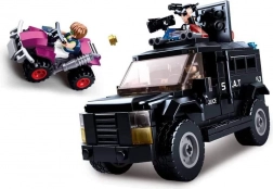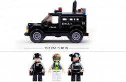 Ta akcijski gradbeni komplet SLUBAN POLICE prinaša vse za dramatično policijsko akcijo: robustno vozilo SWAT, ubežnikov ATV štirikolesnik in tri podrobno izdelane figurke z dodatki. Zahvaljujoč kakovostni plastiki ABS je model trpežen in pripravljen na dolge ure igre.