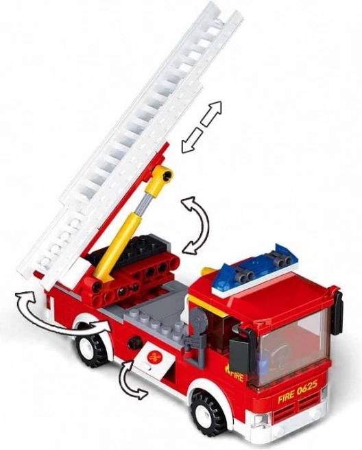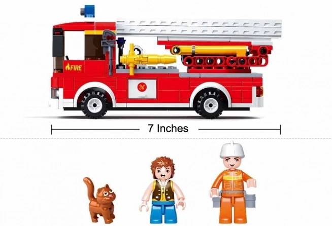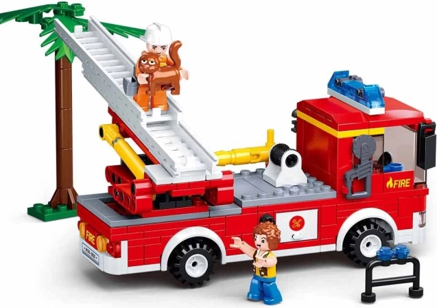 - Kocke, 2 figurici, gasilsko vozilo z lestvijo, dodatki, navodila
