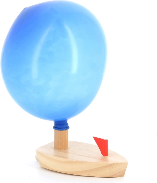 Prinesite domov igrivost s to leseno ladjico na balonasti pogon. Otroci lahko preprosto napihnejo balon, ga pritrdijo na ladjico in opazujejo, kako pluje naprej. Ta preprost, a učinkovit dizajn uči otroke o principu gibanja ter jih hkrati zabava. Idealna igrača za zabaven čas v kadi ali bazenu.