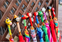 Podarite otrokom veselje tudi v deževnih dneh. Barvit dežnik z igrivim ročajem v obliki žirafe združuje francoski dizajn in odporno izdelavo. Kovinska konstrukcija zagotavlja stabilnost, medtem ko je lakiran les ročaja prijeten v otroški roki.