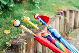 Stabilna in vzdržljiva konstrukcija ščiti pred vetrom in dežjem, zato dežnik zdrži tudi pogoste otroške pustolovščine.
