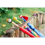 Izviren leseni ročaj v obliki žirafe očara otroke na prvi pogled, hkrati pa se udobno prilega tudi majhnim ročicam.