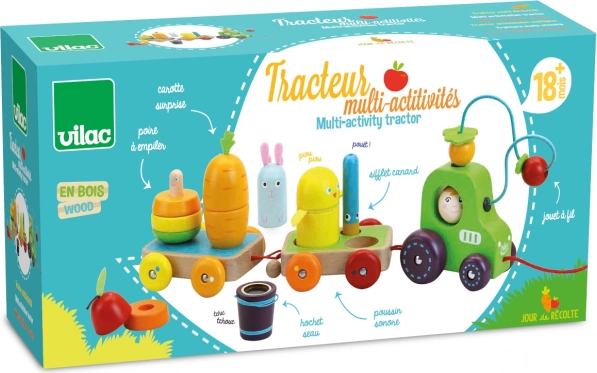 Večnamenski povlečni traktor Vilac ponuja vašim otrokom zabavno in izobraževalno doživetje. Ta lesen traktor je poln barvitih likov in presenečenj, ki razvijajo njihovo domišljijo in motoriko.