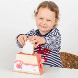 Toaster je izdelan iz trpežnega lesa z zaobljenimi robovi za varno igro. Primeren za vsako otroško kuhinjico.