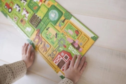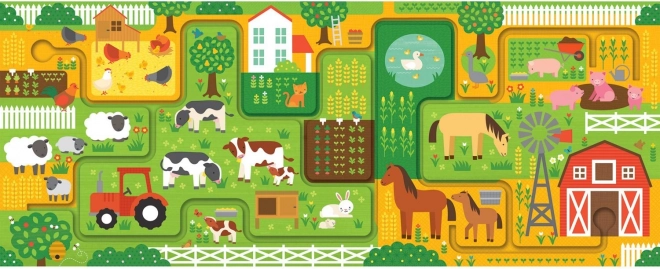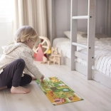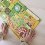 Zabavna in izobraževalna sestavljanka za najmlajše. Sestavite 10 velikih kosov in se s prstom podajte po labirintu skozi kmetijo. Otroci med igro razvijajo fino motoriko, koncentracijo in pozornost, ko na sliki iščejo 20 različnih predmetov. Sestavljanka je izdelana iz recikliranega papirja in natisnjena z barvami na rastlinski osnovi, izpolnjuje stroge varnostne standarde in je idealna za otroke od 2 let dalje.
