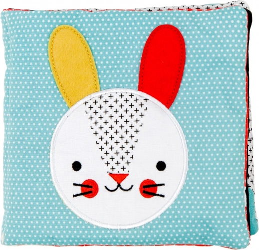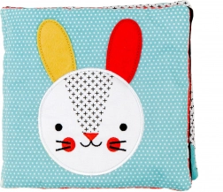 Mehka knjiga s šestimi barvnimi stranmi, ki spodbujajo otrokove čute in podpirajo razvoj vida.