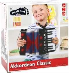 Otroška harmonika small foot Classic prinaša v otroško sobo veselje ob odkrivanju zvokov in ritmov. Lahko plastično ohišje, kompaktne mere in udobni trakovi omogočajo otrokom igranje stoje ali sede brez nepotrebne obremenitve rok. Barvni meh in bleščeča izvedba pritegneta na prvi pogled.