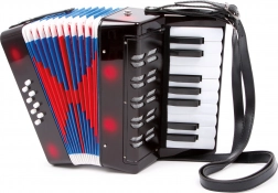 Harmonika je zasnovana kot igrača za otroke od 3 let – razvija slušno zaznavanje, koordinacijo in spodbuja naravno ljubezen do glasbe. Več tipk ponuja širše možnosti igranja preprostih melodij in zabavnih spremljav.