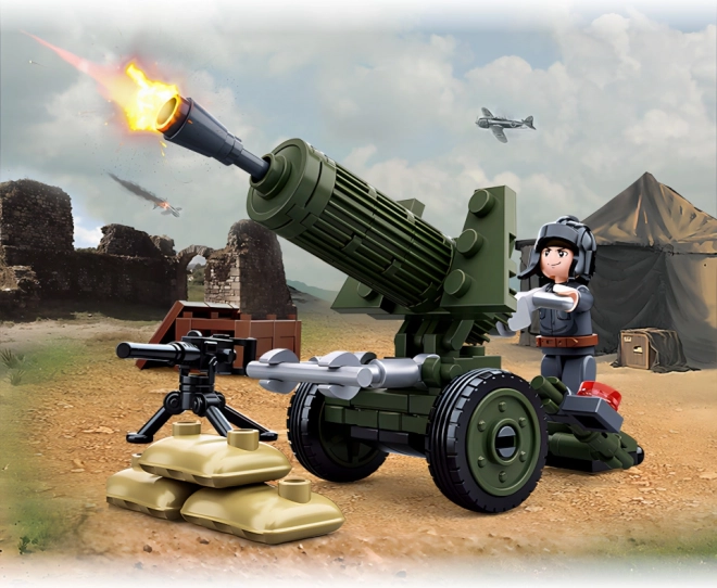 Mini gradbeni komplet bojne tehnike iz serije WWII 4v1, katerega sestavljanje omogoča izdelavo velikega celovitega modela artilerijskega vlačilca. Inovativne gradbene komplete Sluban je mogoče kombinirati s podobnimi kompleti številnih drugih pomembnih proizvajalcev. Izdelani so iz kakovostne, neoporečne in odporne ABS plastike. Vsak komplet vsebuje navodila za sestavljanje in je pakiran v pisano potiskani kartonasti škatli. Glavne lastnosti: 88 delov, 1 figurica, srednja zahtevnost, s kompletiranjem serije je mogoče sestaviti velik model, inovativne figurice z vrtljivimi in nagibnimi deli telesa, kompatibilno z gradbenimi kompleti drugih proizvajalcev