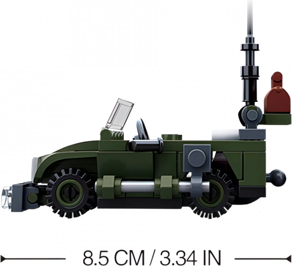 Ta gradbeni set iz tematske serije »WWII« ponuja malim in velikim graditeljem priložnost za ustvarjanje in kombiniranje. Sluban jeep je izdelan iz trpežne ABS plastike, kar zagotavlja dolgo življenjsko dobo in varno igro.