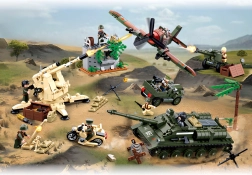 Sestavite tank, terensko vozilo, letalo, motor in topniške kose. Realistične podrobnosti in premični deli omogočajo ustvarjanje napetih bojnih scenarijev.