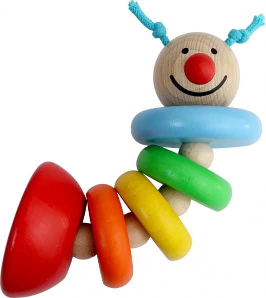 Ta barvita lesena gosenica je idealna prva igrača za najmlajše. Zaradi členov, povezanih z elastiko, se zlahka upogiba, zvija in vrača v obliko, kar otroke spodbuja k aktivnemu raziskovanju ter urjenju koordinacije rok in oči. Kompaktna velikost odlično sede v otroško ročico.