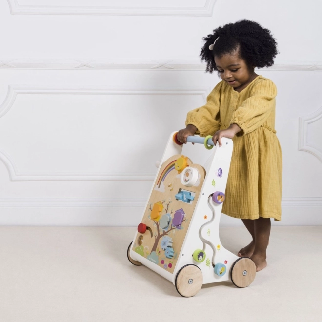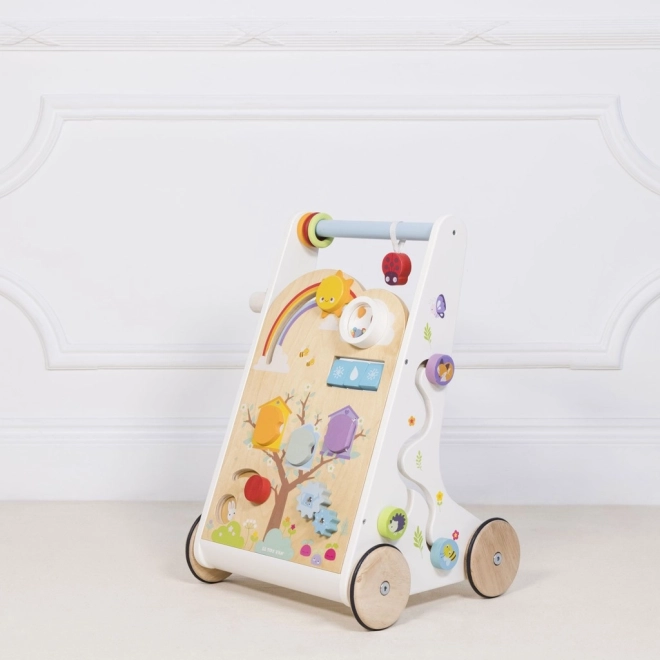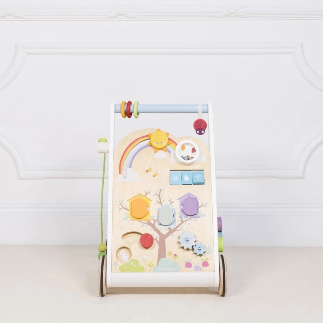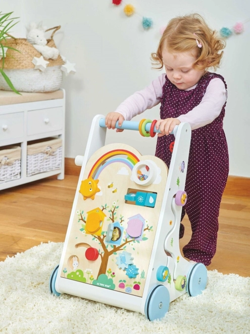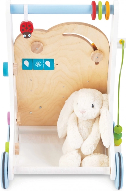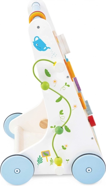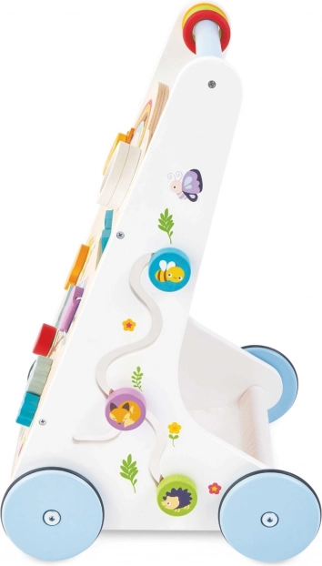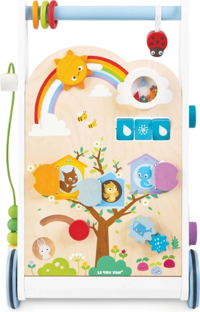 Leseni hojnik z aktivnostmi je zasnovan tako, da je ne le zabaven, temveč tudi izobraževalen. Z njegovo pomočjo se otroci ne naučijo le hoditi, temveč razvijajo tudi svoje senzorične spretnosti.