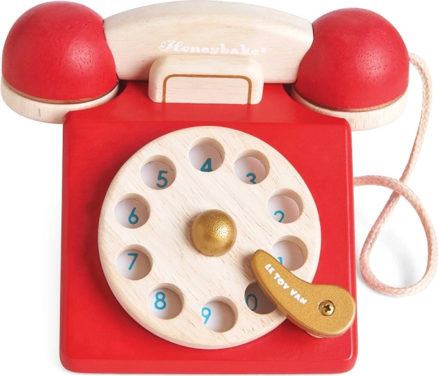 Odkrijte čar klasičnega telefona v otroški različici. Ta leseni retro telefon LE TOY VAN iz kolekcije Honeybake navduši z živo rdečo barvo, naravnimi detajli in realističnimi elementi, kot sta vrtljiv številčnik in zvonec v slušalki. Igrača je ročno dodelana z okolju prijaznimi barvami in zasnovana za dolgo življenjsko dobo.