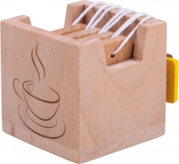 Praktična lesena škatlica ohranja vse pregledno na kupu in olajša pospravljanje po koncu igre. Kakovostni materiali in varna izvedba zagotavljajo dolgo življenjsko dobo in brezskrbno igro.