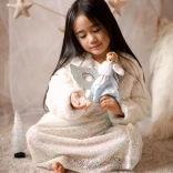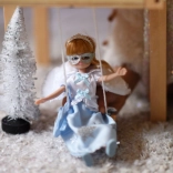 Punčka je oblečena v čudovito modro obleko z ledenimi detajli in srebrnimi snežinkami. Sanja o čarobnem plesu kot Snežna kraljica.