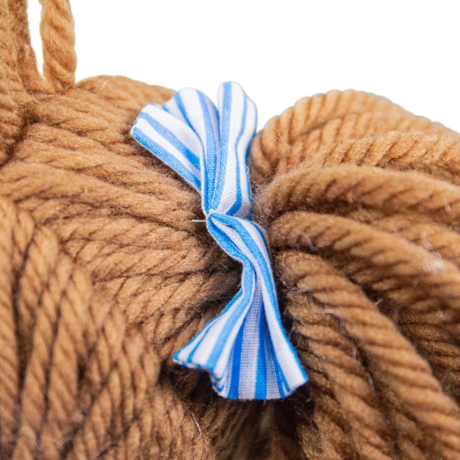 Rjavi lasje iz preje so mehki, trpežni in varni. Punčki dajejo ljubek izraz, ki ga bodo otroci vzljubili.