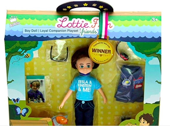 Lottie Finn je sodoben fant, ki otroke navdihuje k prijaznosti, pogumu in raziskovanju vesolja. Zaradi mehkega vinila brez ftalatov je prijeten na dotik, njegova stabilna zasnova pa omogoča samostojno stanje in realistične poze. Stilsko majico »TESLA & EINSTEIN & ME«, kavbojke in modre superge dopolnjuje zvesti prijatelj – kužek Cookie.