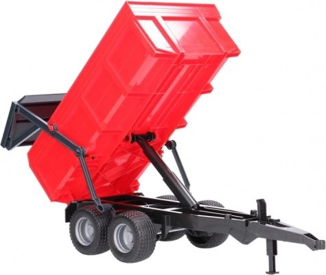 Rdeči zabojnik Bruder je popoln dodatek za vsakega malega kmeta. Ta priljubljena prikolica je opremljena z avtomatskim zadnjim pokrovom, ki se sam odpre med kipanjem, kar prinaša neprekosljivo realističnost v otroške igre. Zadnji pokrov ostane zaprt, če upravljanje ni vključeno, s čimer sta zagotovljeni varnost in funkcionalnost.