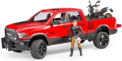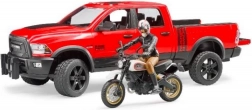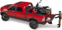 Uživajte v akcijskih pustolovščinah z robustnim pick‑upom Ram, ki brez težav prepelje motocikel Ducati Scrambler na pot. Realistični detajli, odpirajoča se vrata in prosto vrteča se kolesa dvignejo igro na novo raven. Figurica voznika odlično sedi za volanom in na motociklu ter skupaj ustvarita privlačne igralne scenarije.