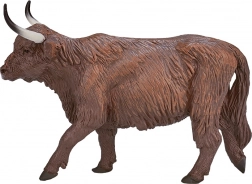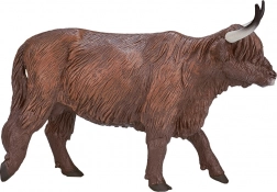 Podroben plastični model škotskega višavskega bika z dolgo teksturo dlake in izrazitimi rogovi.