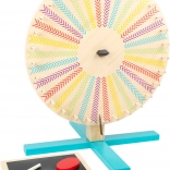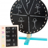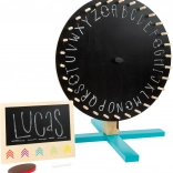 Prebudite ustvarjalnost in tekmovalnost! Otroško kolo sreče SMALL FOOT Active je odlično orodje za igre, žrebanje in učenje. Ena stran ponuja 30 barvnih segmentov, druga praktično tablo za lastne vnose – od črk in besed do nalog in točkovanja. V kompletu najdete tudi majhno samostojno tablico, krede in brisalno gobico.